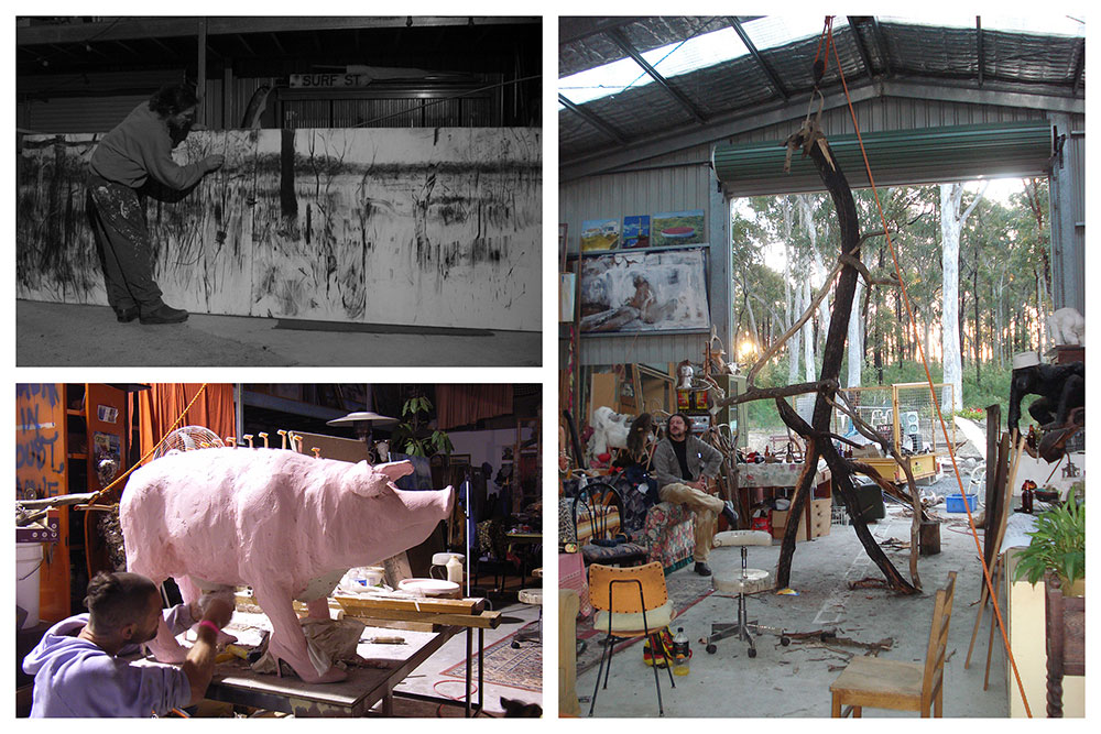 Scribbly Studio is situated in the bushland of Woollamia, near Jervis Bay, N.S.W., Australia. It is an ideal place for me to work, as I draw both inspiration and sculpture materials from my surroundings. It is a space for printmaking, painting and sculpture and a meeting place for artists. I often host music nights and exhibitions. I also run occasional workshops by arrangement, but usually I spend my time making the mess necessary for producing my artwork.